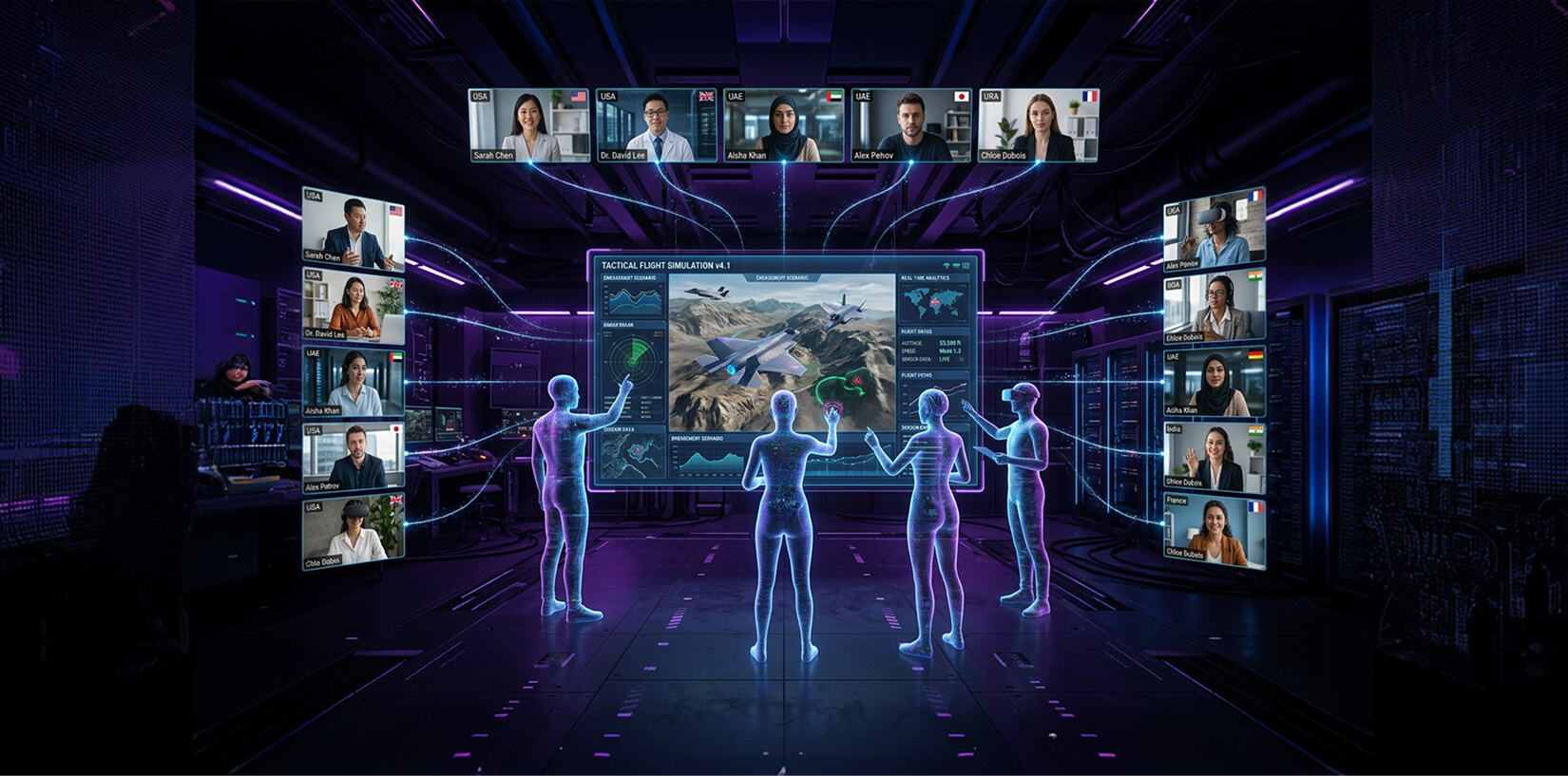 Maintain high-fidelity visuals while blending live instructors, distributed trainees, and AI-driven avatars into a single, synchronized environment—ideal for mission rehearsal, wargaming and operational simulations.